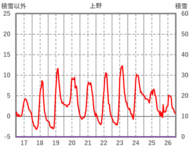 | 日 | 時 | 気温 | 降水 | 風向/風速 | 日照 | 積雪 | 降雪 |