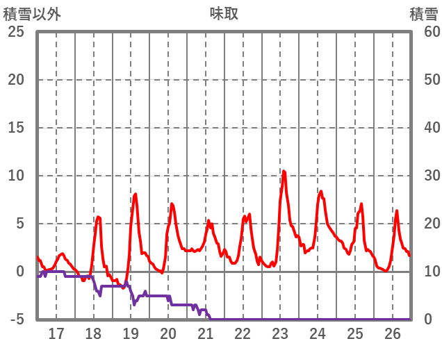 | 日 | 時 | 気温 | 降水 | 風向/風速 | 日照 | 積雪 | 降雪 |