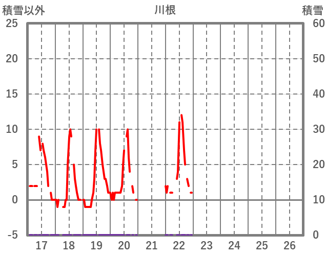 | 日 | 時 | 気温 | 降水 | 風向/風速 | 日照 | 積雪 | 降雪 |