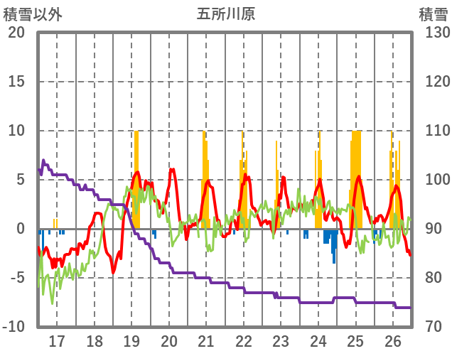 | 日 | 時 | 気温 | 降水 | 風向/風速 | 日照 | 積雪 | 降雪 |