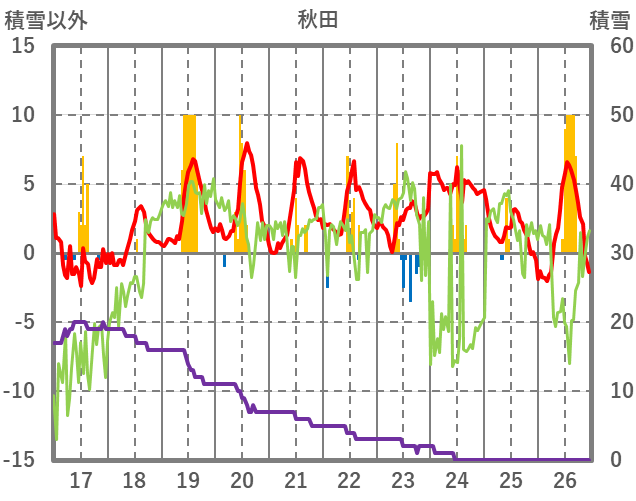 | 日 | 時 | 気温 | 降水 | 風向/風速 | 日照 | 積雪 | 降雪 |