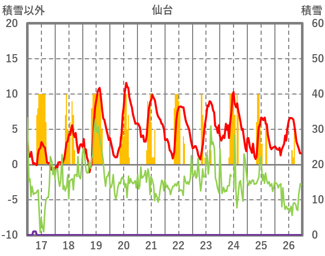 | 日 | 時 | 気温 | 降水 | 風向/風速 | 日照 | 積雪 | 降雪 |