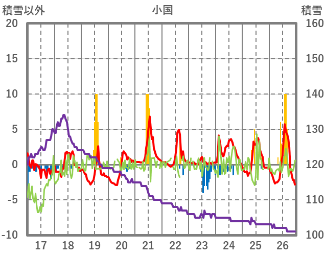 | 日 | 時 | 気温 | 降水 | 風向/風速 | 日照 | 積雪 | 降雪 |