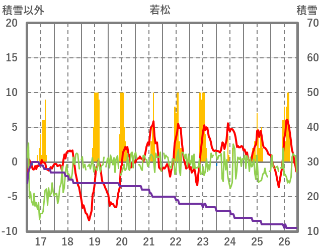 | 日 | 時 | 気温 | 降水 | 風向/風速 | 日照 | 積雪 | 降雪 |