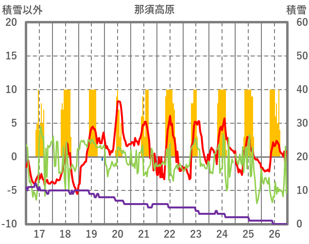 | 日 | 時 | 気温 | 降水 | 風向/風速 | 日照 | 積雪 | 降雪 |