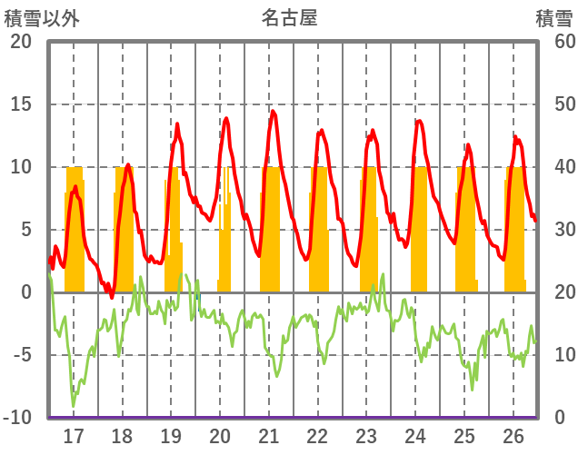 | 日 | 時 | 気温 | 降水 | 風向/風速 | 日照 | 積雪 | 降雪 |