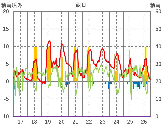 | 日 | 時 | 気温 | 降水 | 風向/風速 | 日照 | 積雪 | 降雪 |