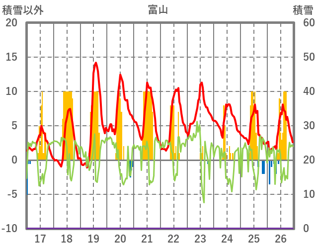 | 日 | 時 | 気温 | 降水 | 風向/風速 | 日照 | 積雪 | 降雪 |