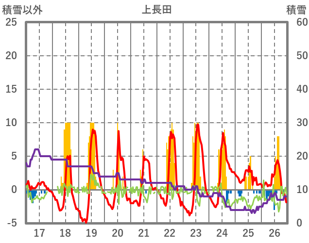 | 日 | 時 | 気温 | 降水 | 風向/風速 | 日照 | 積雪 | 降雪 |