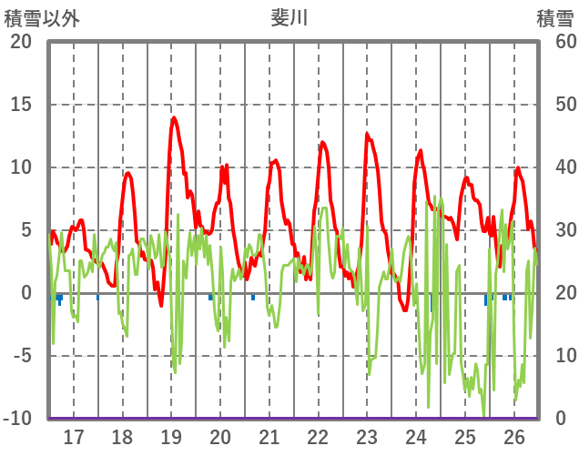 | 日 | 時 | 気温 | 降水 | 風向/風速 | 日照 | 積雪 | 降雪 |