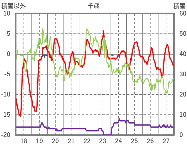 | 日 | 時 | 気温 | 降水 | 風向/風速 | 日照 | 積雪 | 降雪 |
