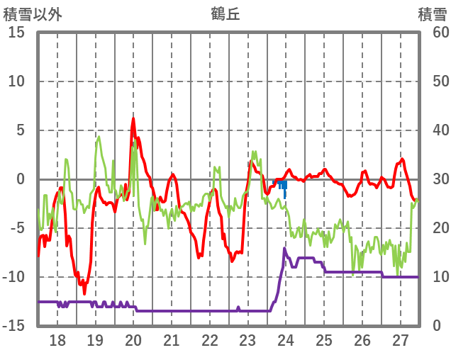 | 日 | 時 | 気温 | 降水 | 風向/風速 | 日照 | 積雪 | 降雪 |