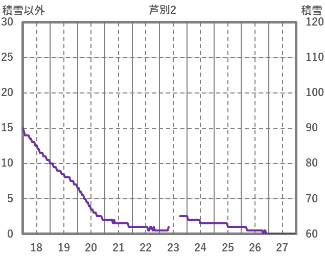 | 日 | 時 | 気温 | 降水 | 風向/風速 | 日照 | 積雪 | 降雪 |