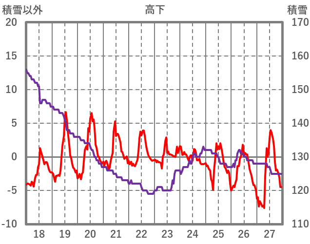 | 日 | 時 | 気温 | 降水 | 風向/風速 | 日照 | 積雪 | 降雪 |