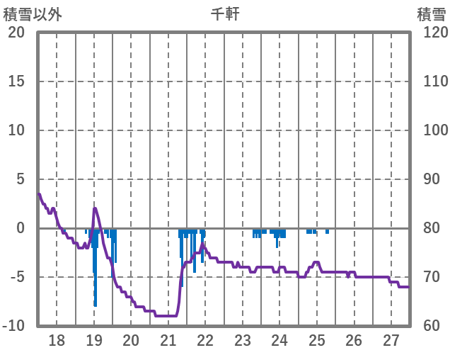 | 日 | 時 | 気温 | 降水 | 風向/風速 | 日照 | 積雪 | 降雪 |