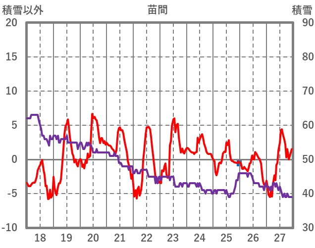 | 日 | 時 | 気温 | 降水 | 風向/風速 | 日照 | 積雪 | 降雪 |