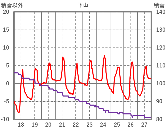 | 日 | 時 | 気温 | 降水 | 風向/風速 | 日照 | 積雪 | 降雪 |