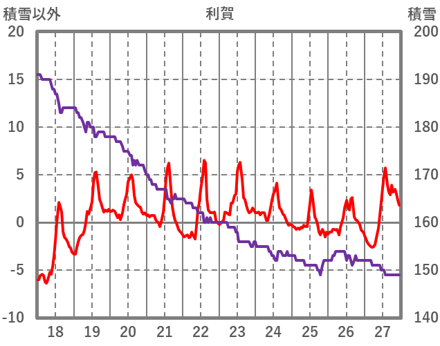 | 日 | 時 | 気温 | 降水 | 風向/風速 | 日照 | 積雪 | 降雪 |