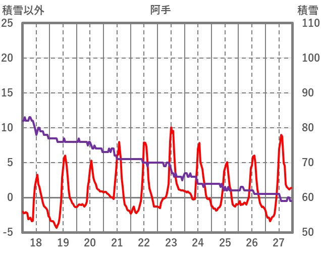 | 日 | 時 | 気温 | 降水 | 風向/風速 | 日照 | 積雪 | 降雪 |