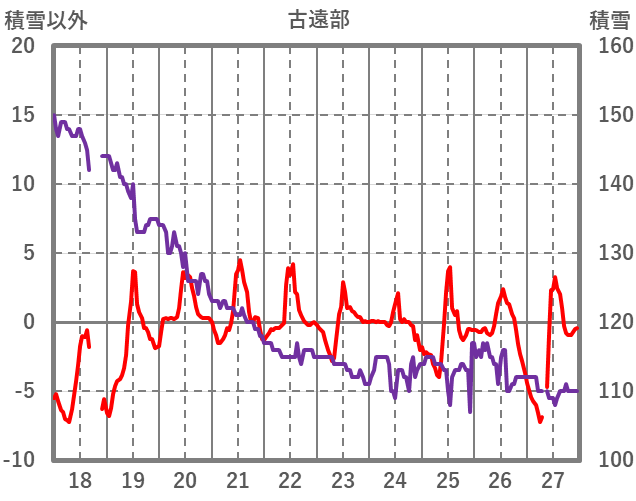 | 日 | 時 | 気温 | 降水 | 風向/風速 | 日照 | 積雪 | 降雪 |