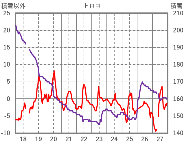 | 日 | 時 | 気温 | 降水 | 風向/風速 | 日照 | 積雪 | 降雪 |