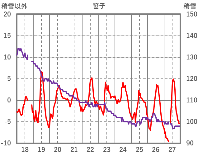 | 日 | 時 | 気温 | 降水 | 風向/風速 | 日照 | 積雪 | 降雪 |
