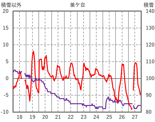 | 日 | 時 | 気温 | 降水 | 風向/風速 | 日照 | 積雪 | 降雪 |