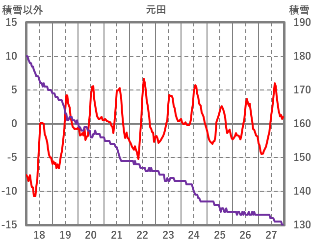 | 日 | 時 | 気温 | 降水 | 風向/風速 | 日照 | 積雪 | 降雪 |
