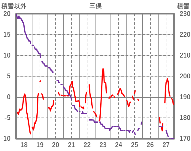 | 日 | 時 | 気温 | 降水 | 風向/風速 | 日照 | 積雪 | 降雪 |