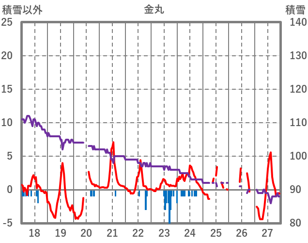 | 日 | 時 | 気温 | 降水 | 風向/風速 | 日照 | 積雪 | 降雪 |
