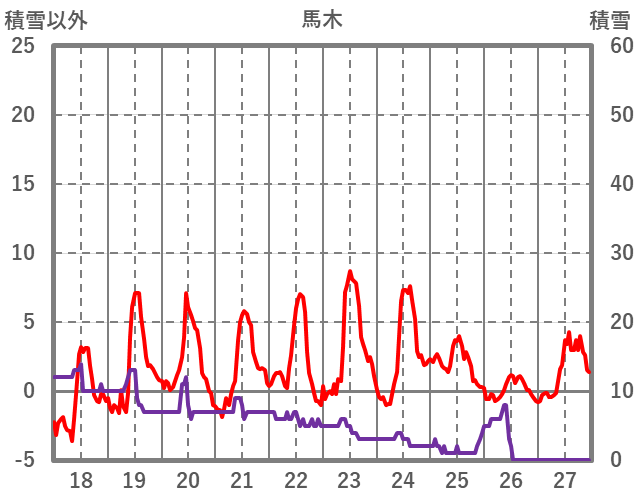 | 日 | 時 | 気温 | 降水 | 風向/風速 | 日照 | 積雪 | 降雪 |