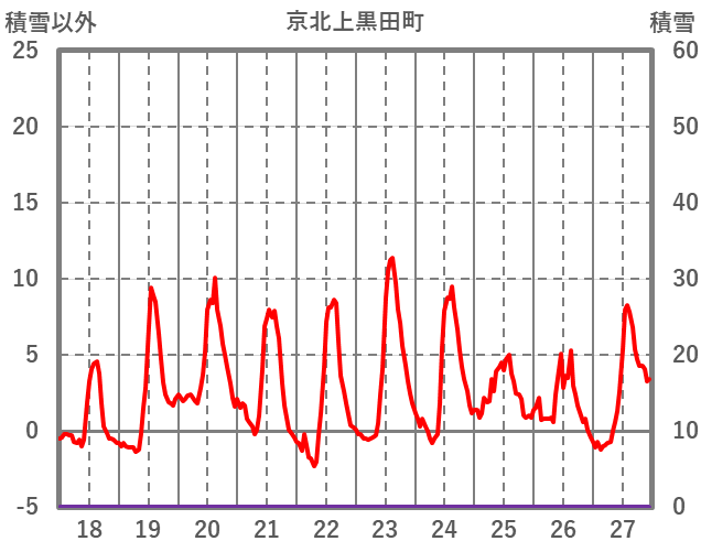 | 日 | 時 | 気温 | 降水 | 風向/風速 | 日照 | 積雪 | 降雪 |