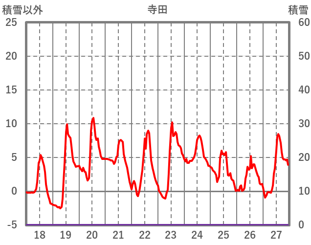 | 日 | 時 | 気温 | 降水 | 風向/風速 | 日照 | 積雪 | 降雪 |