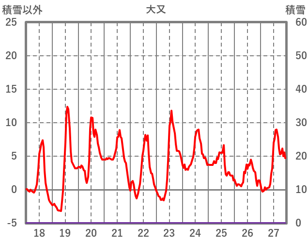 | 日 | 時 | 気温 | 降水 | 風向/風速 | 日照 | 積雪 | 降雪 |