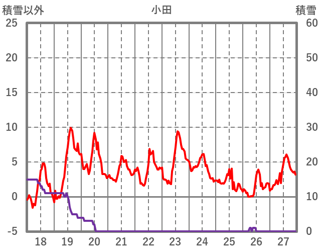 | 日 | 時 | 気温 | 降水 | 風向/風速 | 日照 | 積雪 | 降雪 |