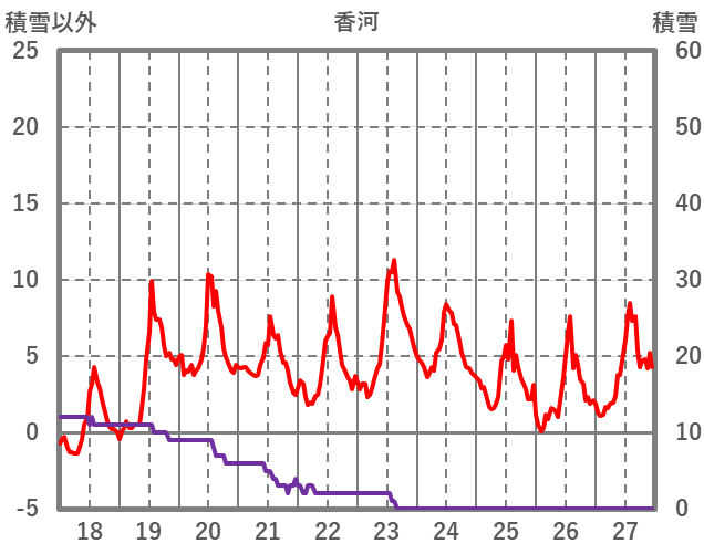 | 日 | 時 | 気温 | 降水 | 風向/風速 | 日照 | 積雪 | 降雪 |