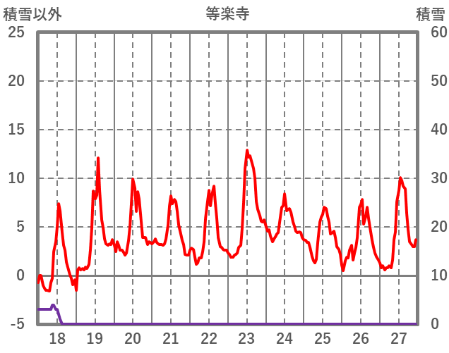 | 日 | 時 | 気温 | 降水 | 風向/風速 | 日照 | 積雪 | 降雪 |