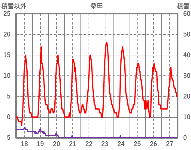 | 日 | 時 | 気温 | 降水 | 風向/風速 | 日照 | 積雪 | 降雪 |