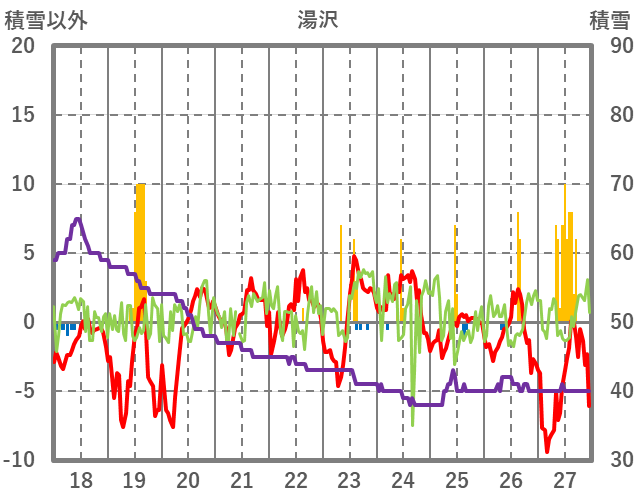 | 日 | 時 | 気温 | 降水 | 風向/風速 | 日照 | 積雪 | 降雪 |