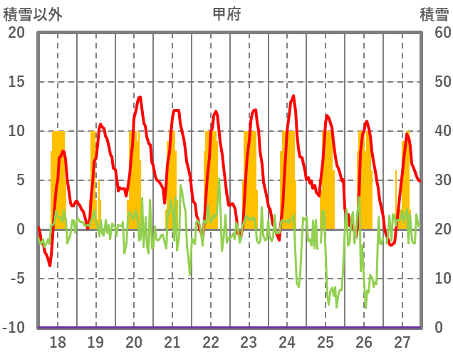 | 日 | 時 | 気温 | 降水 | 風向/風速 | 日照 | 積雪 | 降雪 |