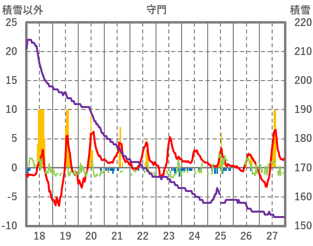 | 日 | 時 | 気温 | 降水 | 風向/風速 | 日照 | 積雪 | 降雪 |