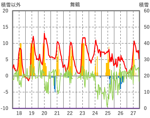 | 日 | 時 | 気温 | 降水 | 風向/風速 | 日照 | 積雪 | 降雪 |