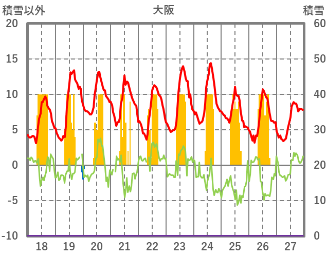 | 日 | 時 | 気温 | 降水 | 風向/風速 | 日照 | 積雪 | 降雪 |