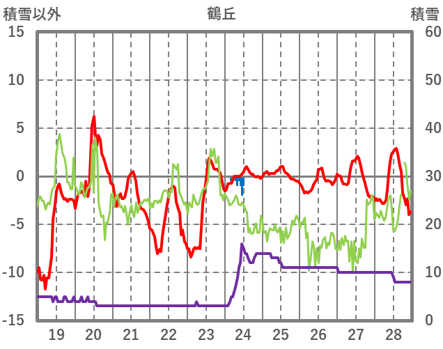 | 日 | 時 | 気温 | 降水 | 風向/風速 | 日照 | 積雪 | 降雪 |