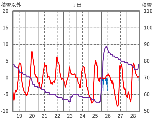 | 日 | 時 | 気温 | 降水 | 風向/風速 | 日照 | 積雪 | 降雪 |