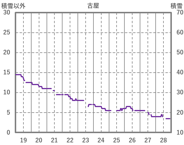 | 日 | 時 | 気温 | 降水 | 風向/風速 | 日照 | 積雪 | 降雪 |