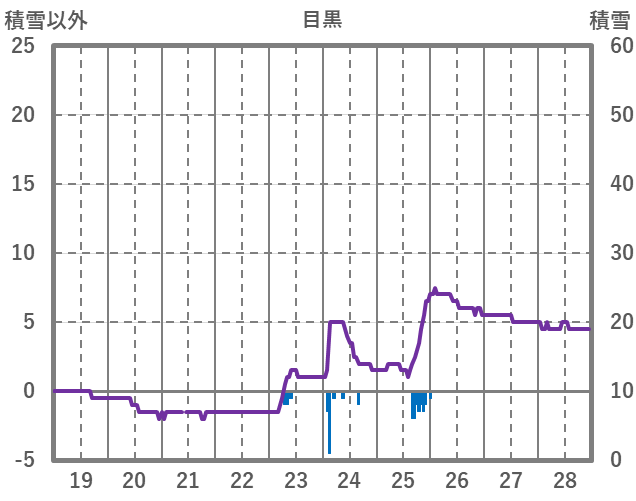 | 日 | 時 | 気温 | 降水 | 風向/風速 | 日照 | 積雪 | 降雪 |