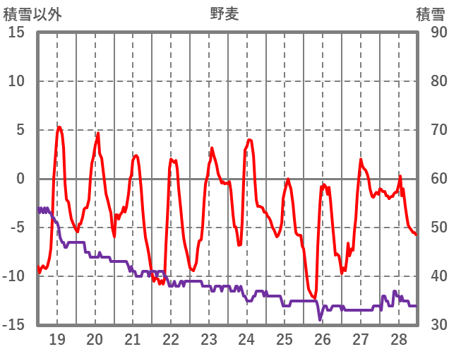 | 日 | 時 | 気温 | 降水 | 風向/風速 | 日照 | 積雪 | 降雪 |