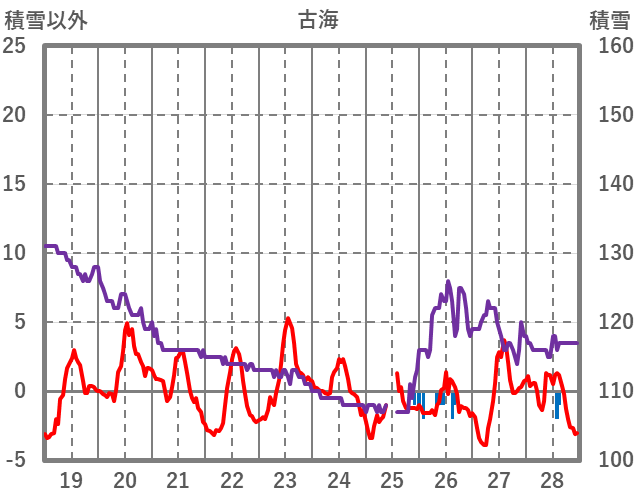 | 日 | 時 | 気温 | 降水 | 風向/風速 | 日照 | 積雪 | 降雪 |
