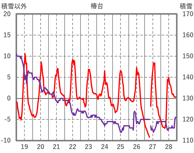 | 日 | 時 | 気温 | 降水 | 風向/風速 | 日照 | 積雪 | 降雪 |